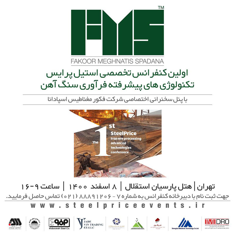 این کنفرانس تخصصی در محورهای مدیریت فرآوری باطله های سنگ آهن کشور برای تامین بخشی از مواد اولیه صنایع فولاد، چگونگی استفاده از تکنولوژی های فرآوری سنگ در معادن کشور، معرفی جدیدترین تکنولوژی های فرآوری سنگ آهن تا گندله با هدف افزایش بهره وری تولید، نیازسنجی شرکت های معدنی و فولادی کشور برای استفاده از تکنولوژی های جدید فرآوری سنگ آهن با هدف افزایش بهره وری تولید و تامین مواد اولیه و هم اندیشی شرکت های معدنی و فولادی کشور با هدف استفاده از روشهای جدید فرآوری در تاریخ 8 اسفند ماه در هتل پارسیان استقلال برگزار می شود. شرکت فکور مغناطیس اسپادانا در این کنفرانس به عنوان یکی از اسپانسرهای اصلی این رویداد، پنل سخنرانی اختصاصی به مدت یک ساعت با موضوع نوآوری های FMS در خصوص چالش های فراروی فرآوری سنگ آهن را برگزار خواهد نمود. سازمان ایمیدرو ، شرکت معدنی و صنعتی گل گهر، شرکت معدنی و صنعتی چادرملو و شرکت زرین معدن چاف و شرکت تجلی توسعه معادن و فلزات از سایر حامیان این دوره از کنفرانس می باشند.